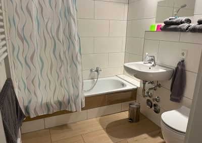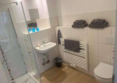 Apartment 5 verfügt über ein WC mit Badewanne, die anderen 4 Zimmer sind mit WC & Dusche ausgestattet, 4 unserer 5 Zimmer verfügen über einen Balkon. Alle Zimmer sind Nichtraucher Zimmer, allerdings ist auf dem Gelände das Rauchen gestattet.